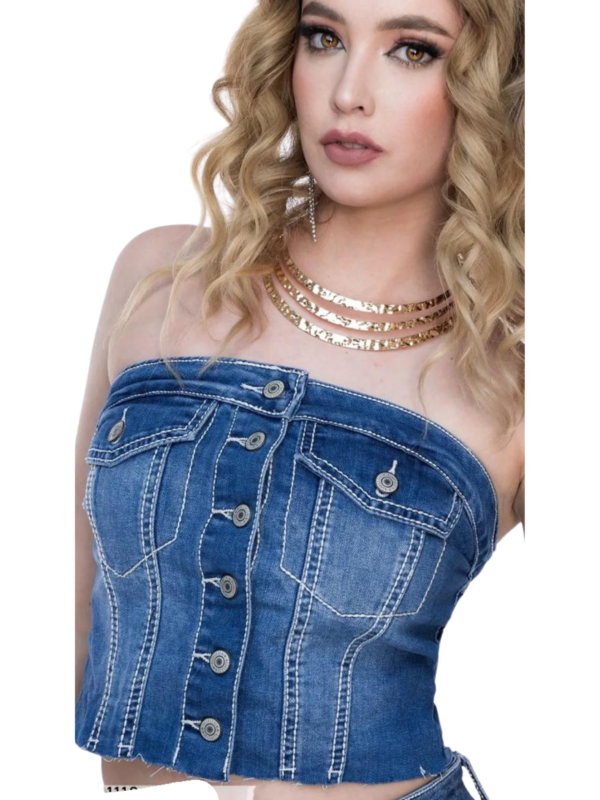 Valorado en 0 de 5$405.00 – $2,130.00 Seleccionar opciones Este producto tiene múltiples variantes. Las opciones se pueden elegir en la página de productoTop corset de mezclilla con botones frontales