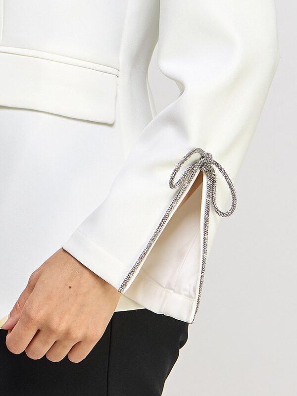 Valorado en 0 de 5$260.00 Seleccionar opciones Este producto tiene múltiples variantes. Las opciones se pueden elegir en la página de productoSaco para mujer con brillo en mangas y solapa estructurada