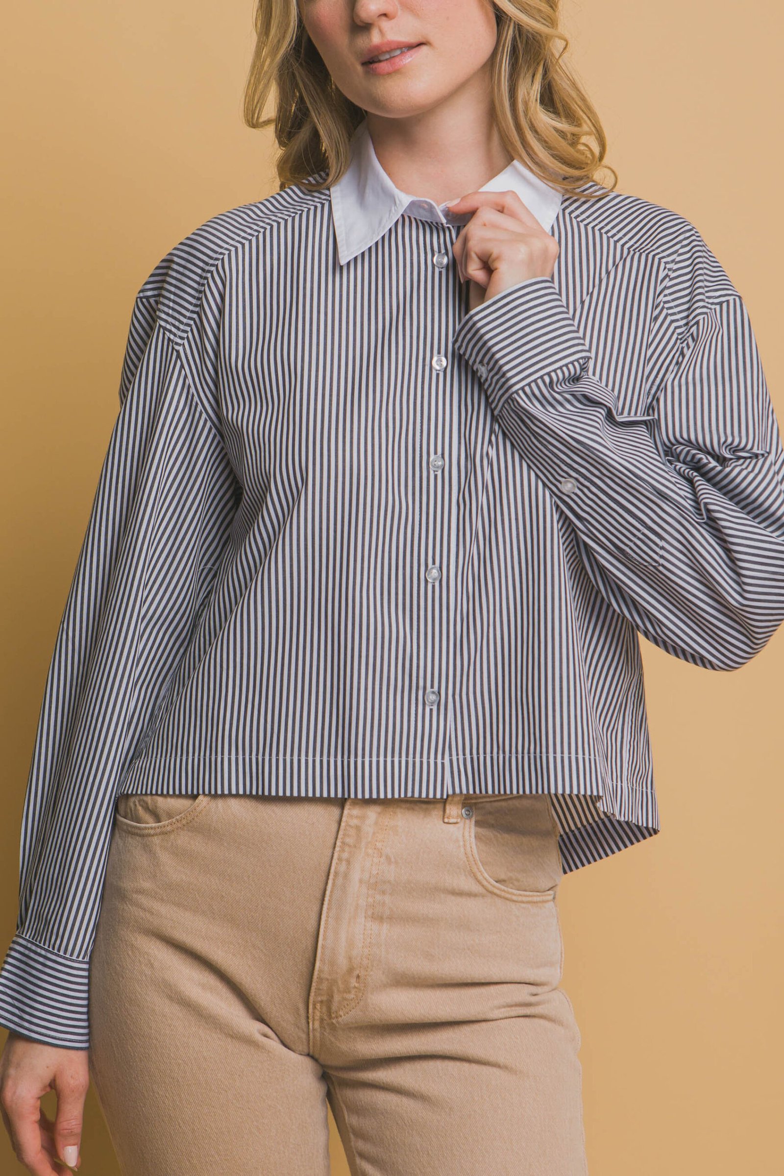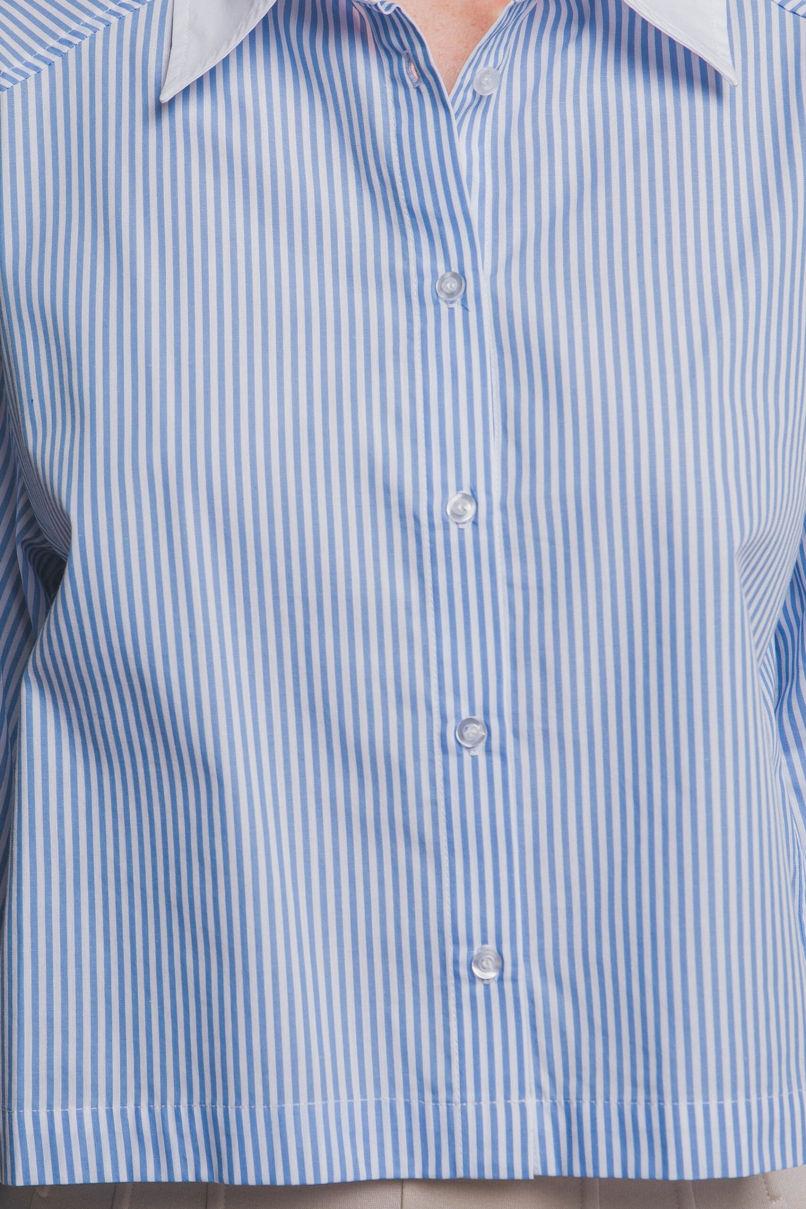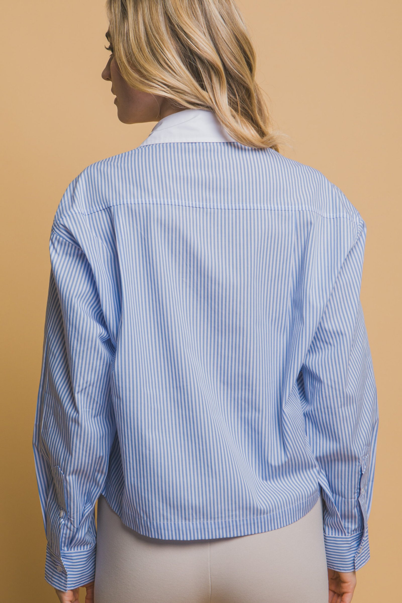 Dale un giro fresco a tu clóset con esta blusa cropped de rayas en azul y blanco, diseñada especialmente para mujer. Su corte oversize y mangas largas con puños anchos aportan comodidad y estilo, mientras que el cuello camisero en contraste ofrece un detalle moderno que hará que tu look destaque. Perfecta para combinar con prendas de tiro alto o faldas midi, es ideal para quienes buscan un outfit versátil y a la moda. ¡Atrévete a lucir única y cómoda en cualquier ocasión!
