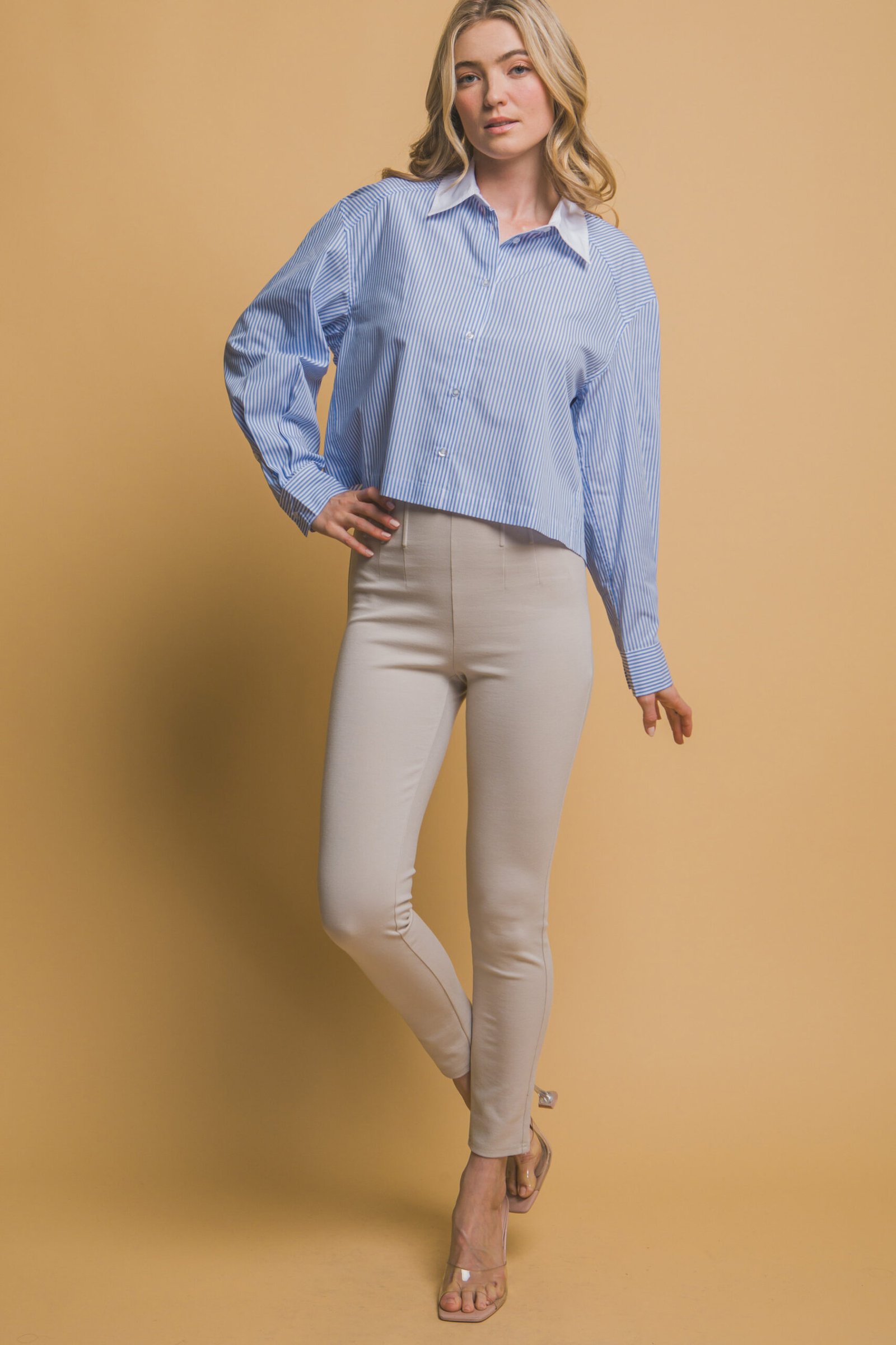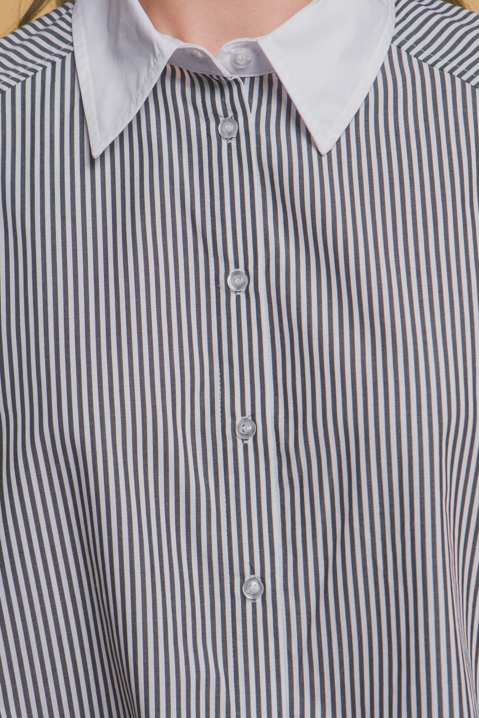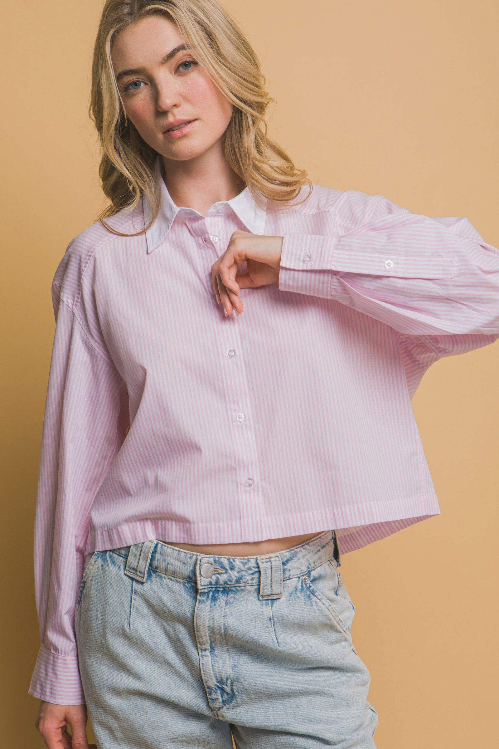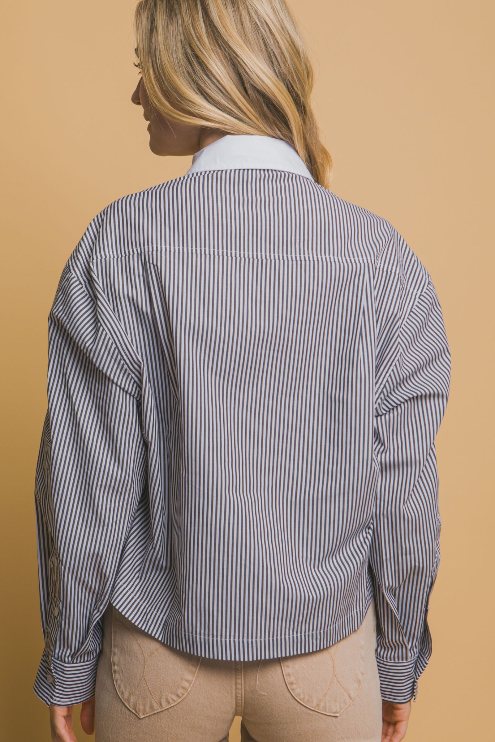 Dale un giro fresco a tu clóset con esta blusa cropped de rayas en azul y blanco, diseñada especialmente para mujer. Su corte oversize y mangas largas con puños anchos aportan comodidad y estilo, mientras que el cuello camisero en contraste ofrece un detalle moderno que hará que tu look destaque. Perfecta para combinar con prendas de tiro alto o faldas midi, es ideal para quienes buscan un outfit versátil y a la moda. ¡Atrévete a lucir única y cómoda en cualquier ocasión!