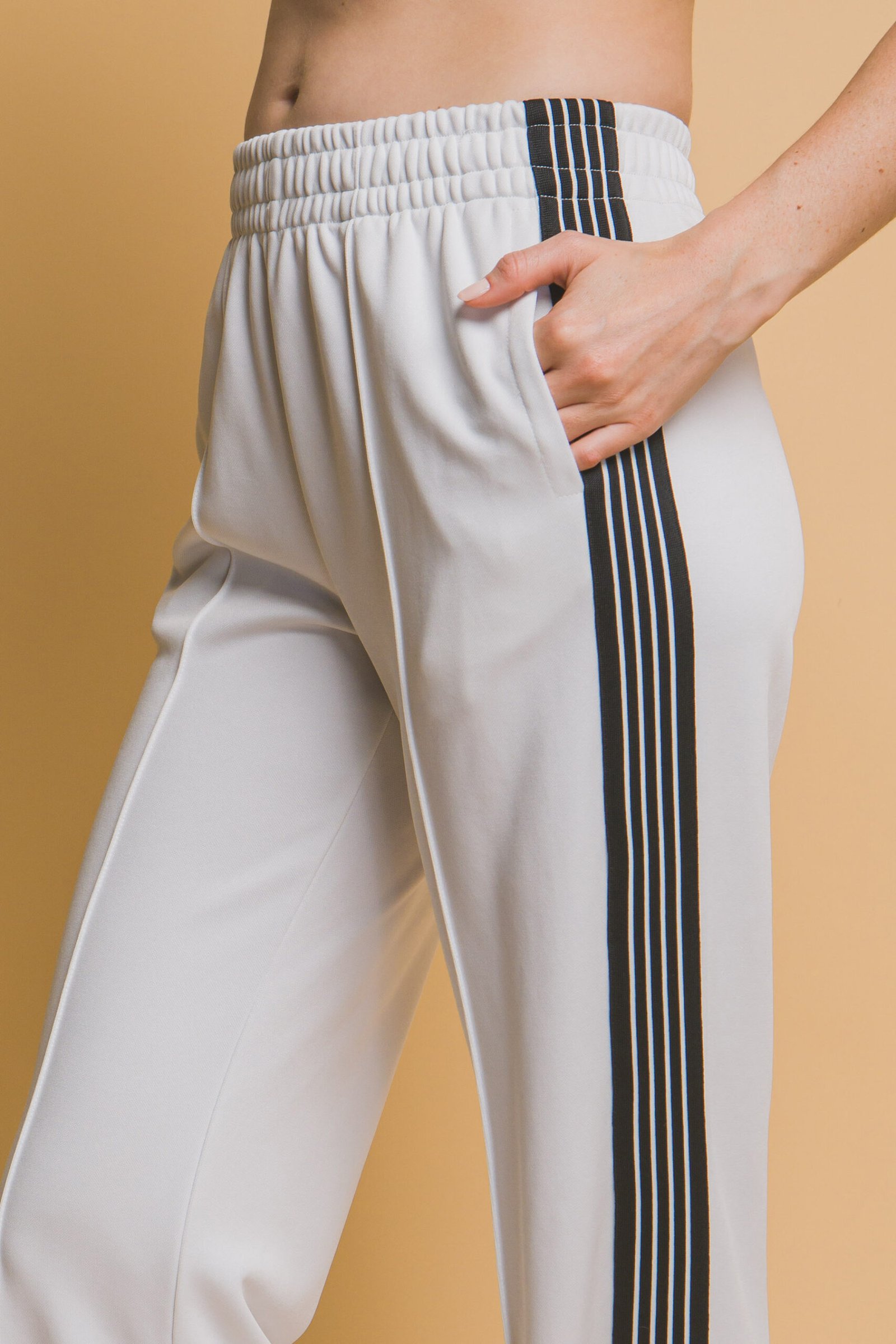 • Rayas verticales en azul claro y blanco que estilizan la figura.