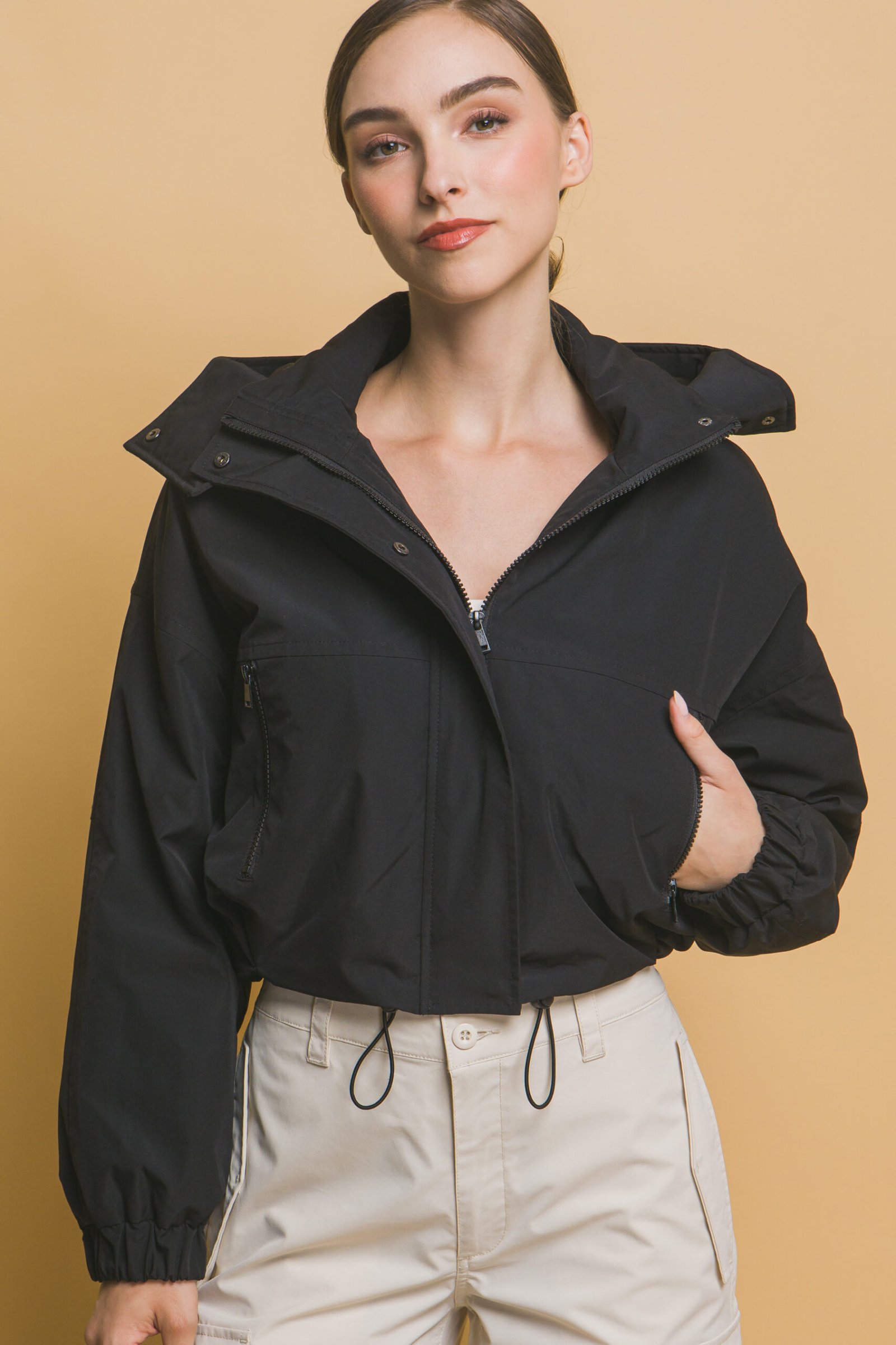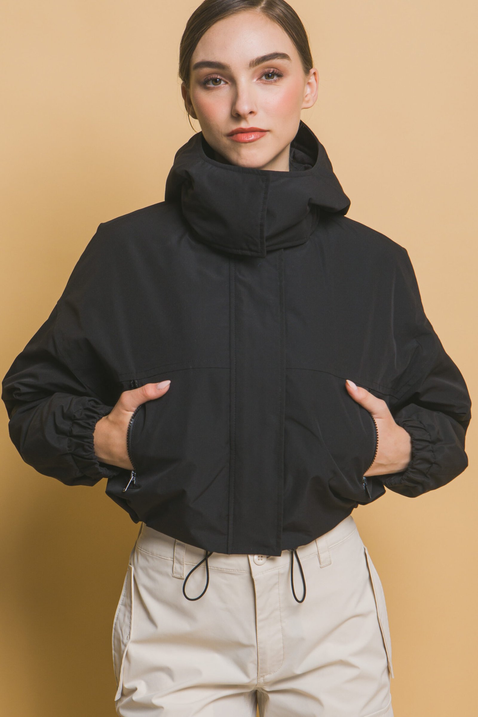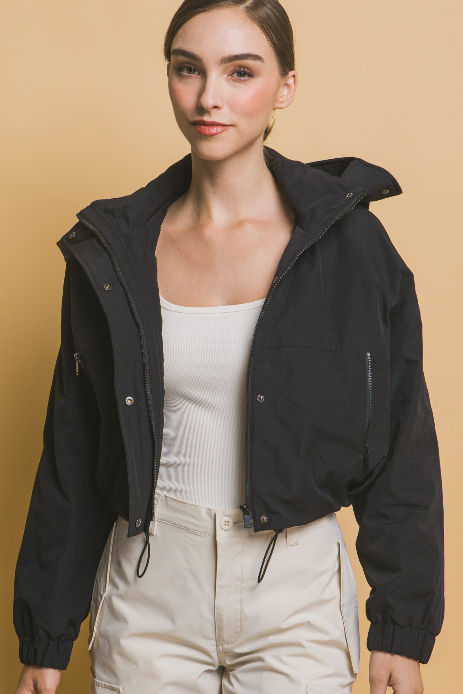 Chamarra negro para dama con gorro integrado, cierre frontal y bolsillos con cremallera al frente. Diseño moderno y funcional, ideal para días frescos o lluviosos. Su corte recto con caída estructurada realza la figura sin perder comodidad. Un básico de armario que combina estilo y practicidad, perfecta para climas variables o para armar outfits urbanos con aire minimalista.
