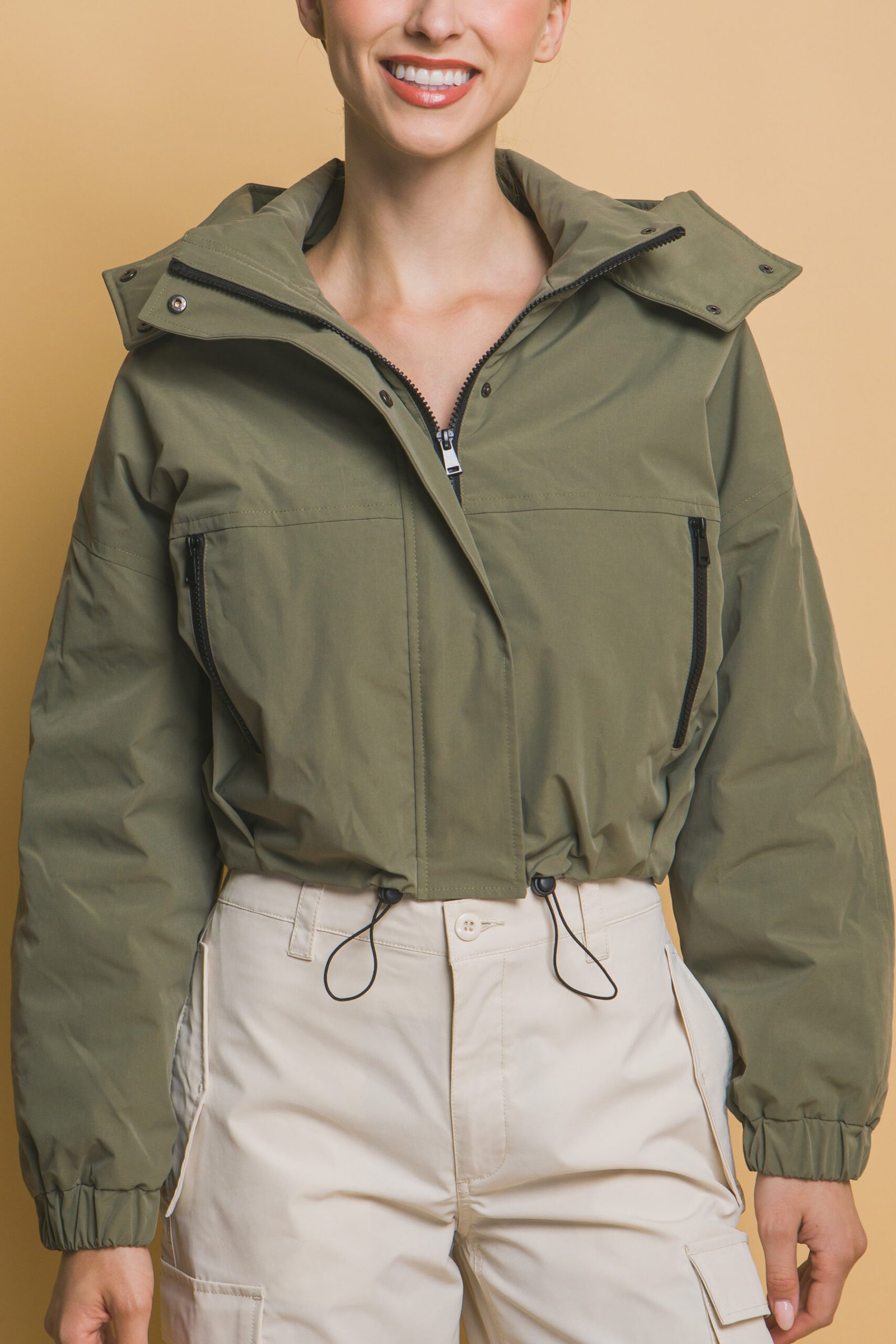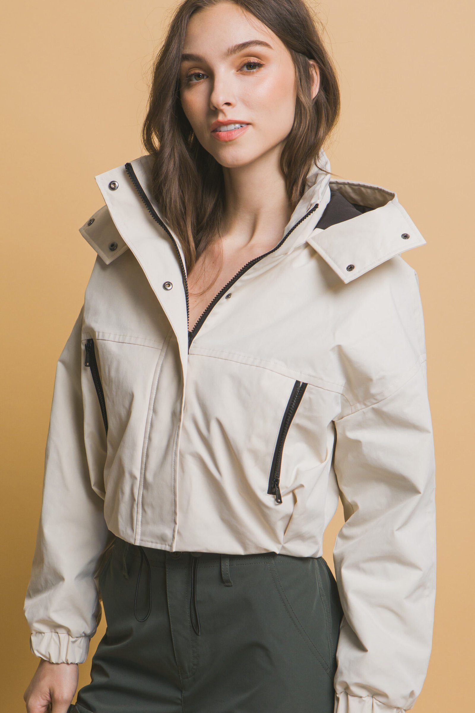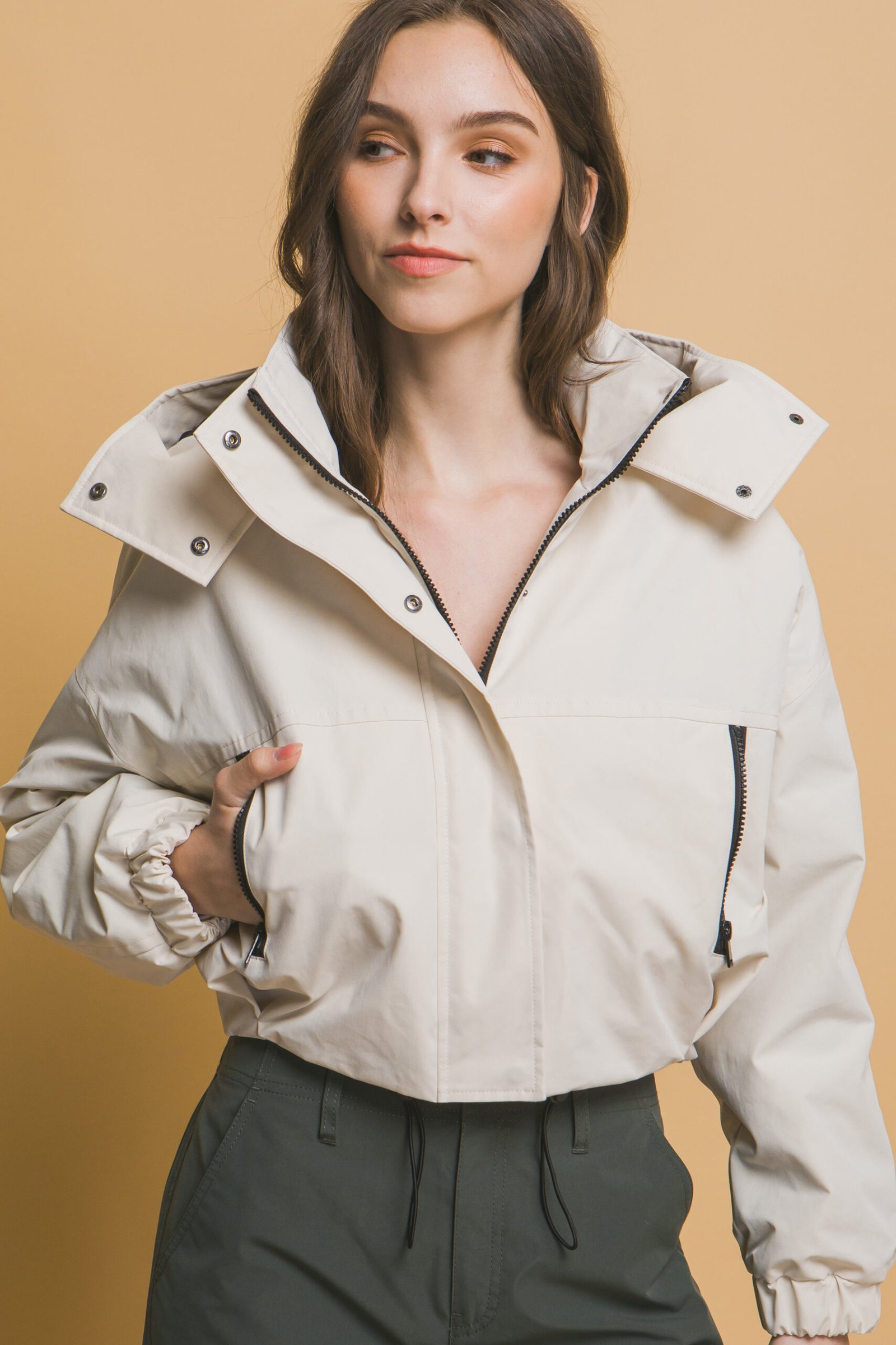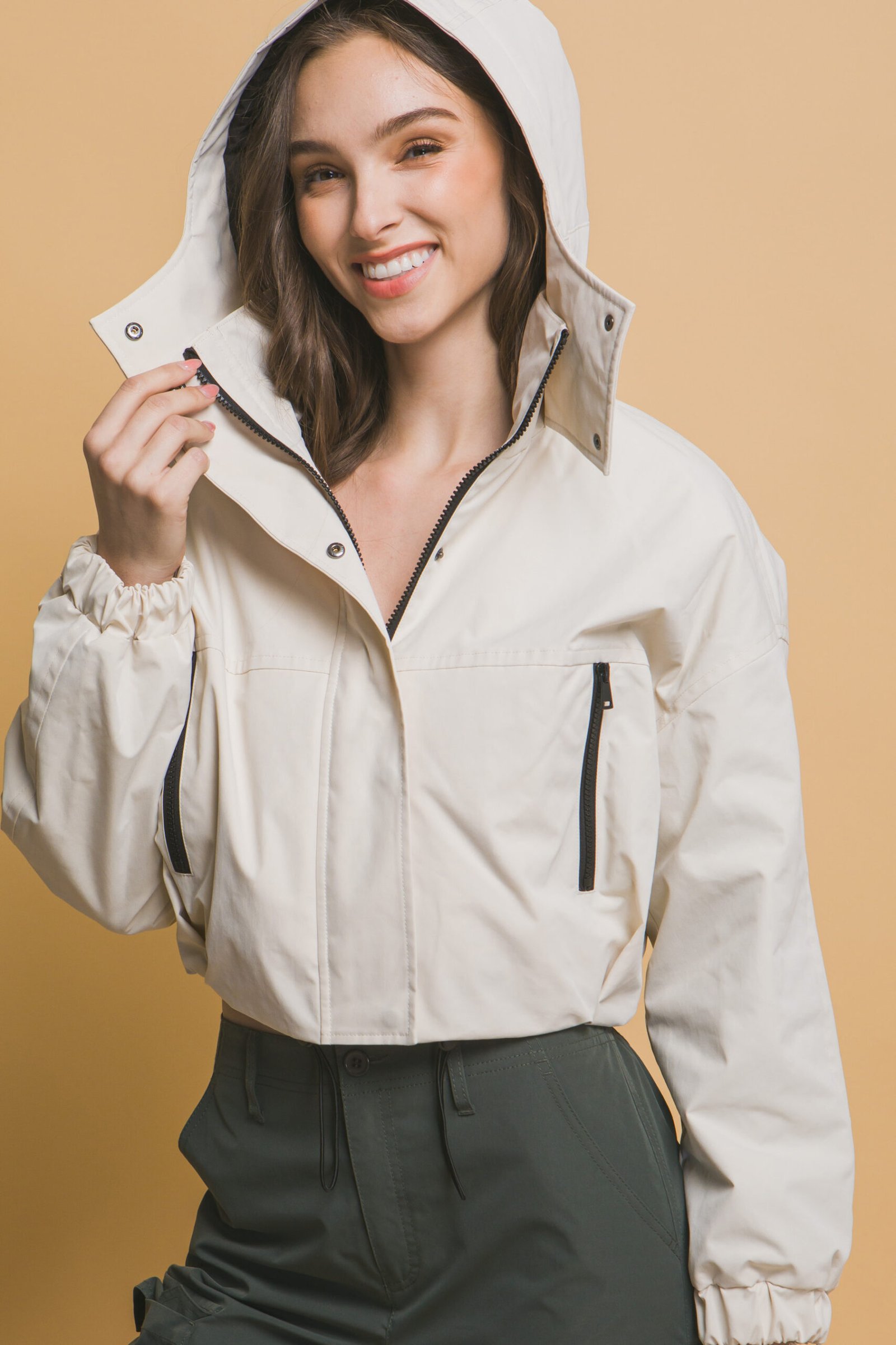 Chamarra negro para dama con gorro integrado, cierre frontal y bolsillos con cremallera al frente. Diseño moderno y funcional, ideal para días frescos o lluviosos. Su corte recto con caída estructurada realza la figura sin perder comodidad. Un básico de armario que combina estilo y practicidad, perfecta para climas variables o para armar outfits urbanos con aire minimalista.