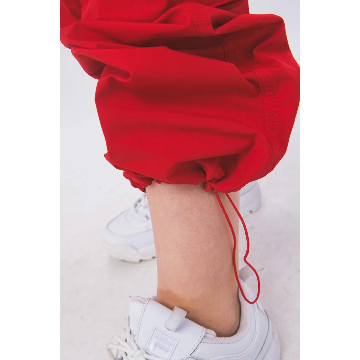 Pantalón jogger rojo vibrante con cordón ajustable en el tobillo, perfecto para un look casual moderno y cómodo
