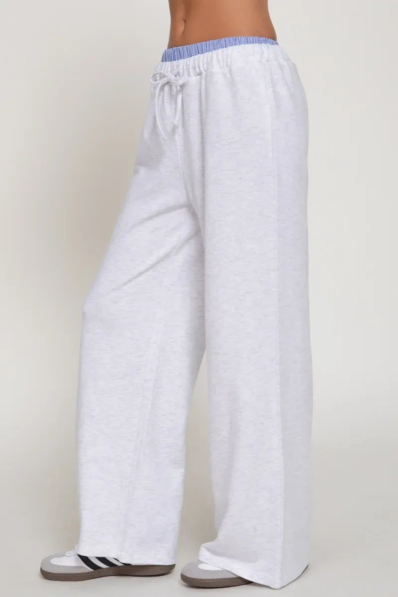 Pantalón palazzo blanco de máxima comodidad con cintura elástica y cordón ajustable. Perfecto para el día a día