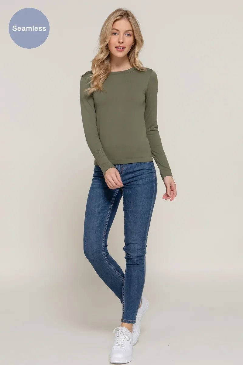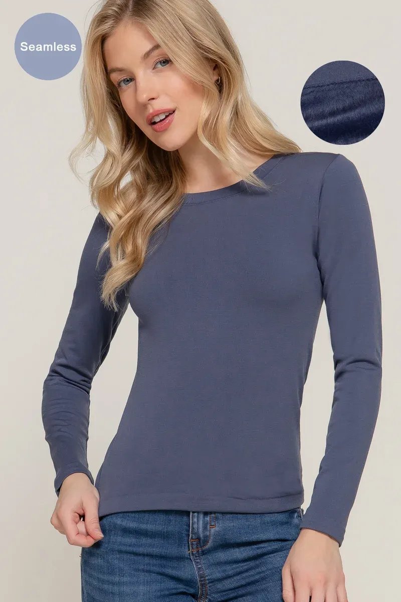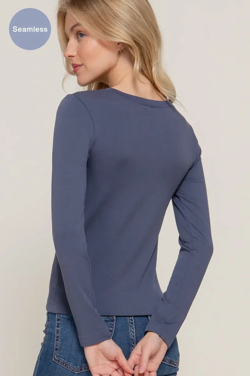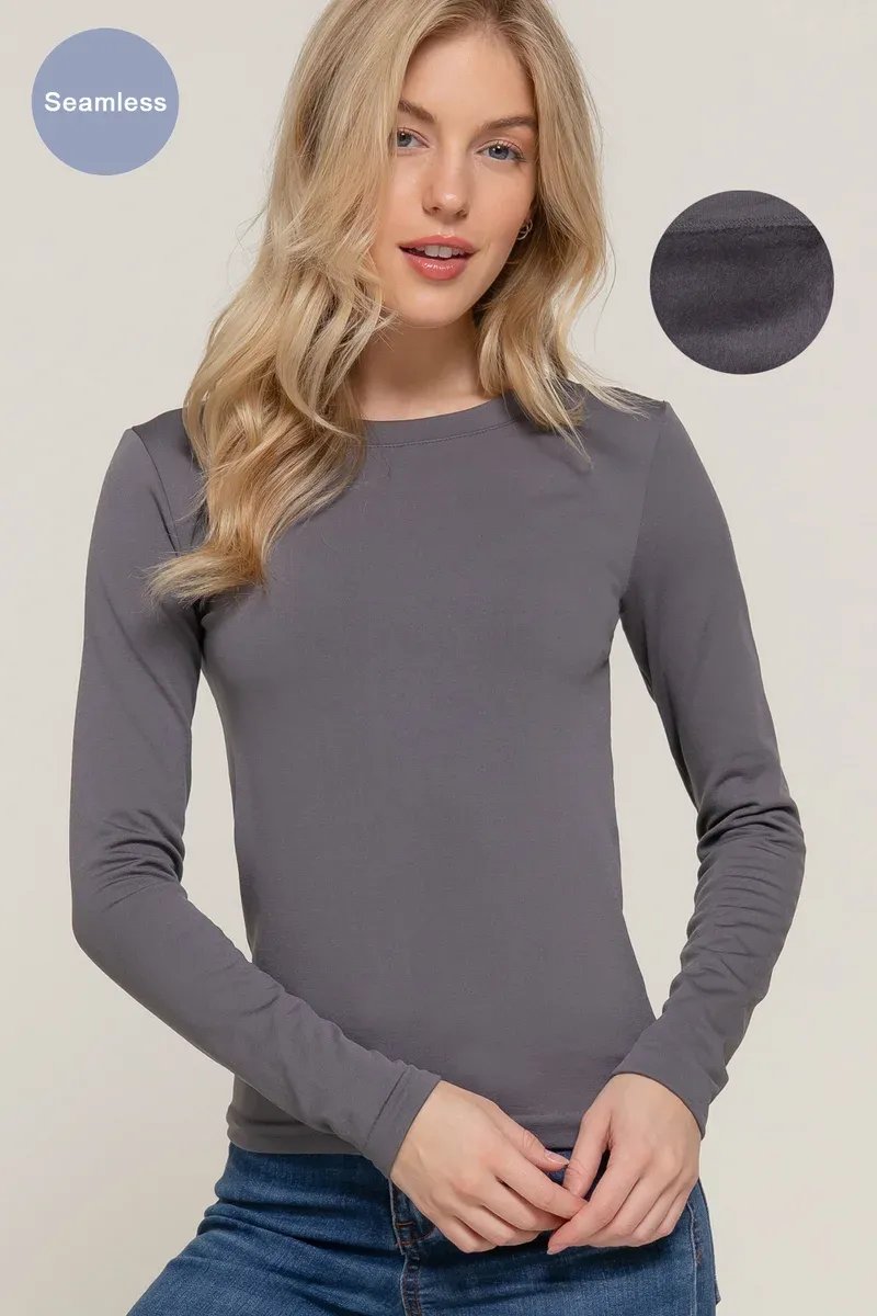 Playera básica de manga larga en elegante tono gris, perfecta para looks casuales y versátiles combinaciones diarias