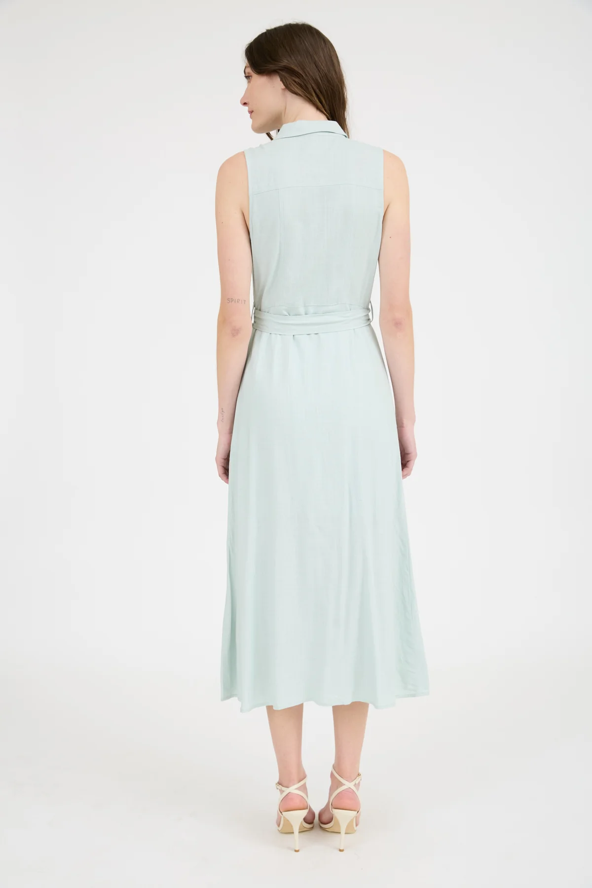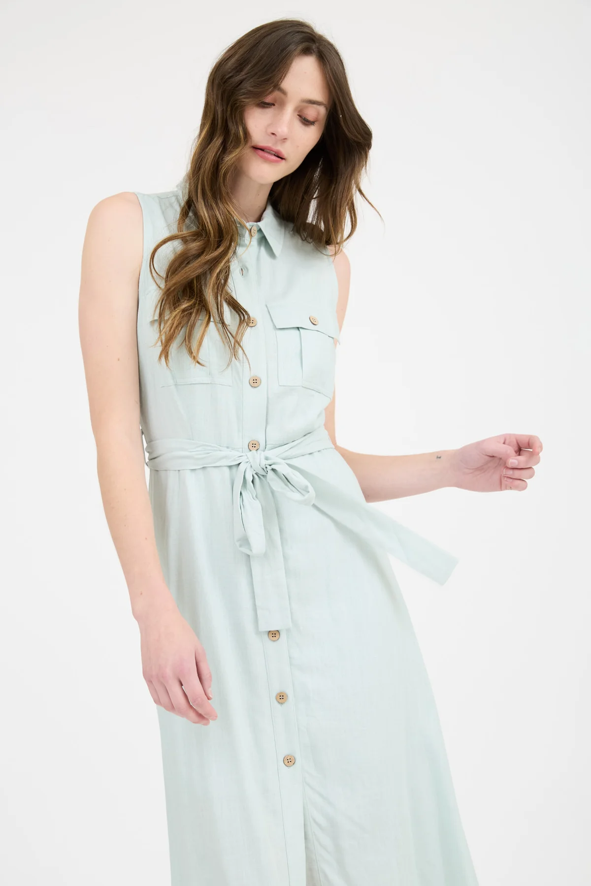 Dale un toque sofisticado y fresco a tu estilo con este vestido camisero largo sin mangas para mujer. Ideal para outfits elegantes, casuales o para días donde quieras lucir cómoda y con mucho estilo.